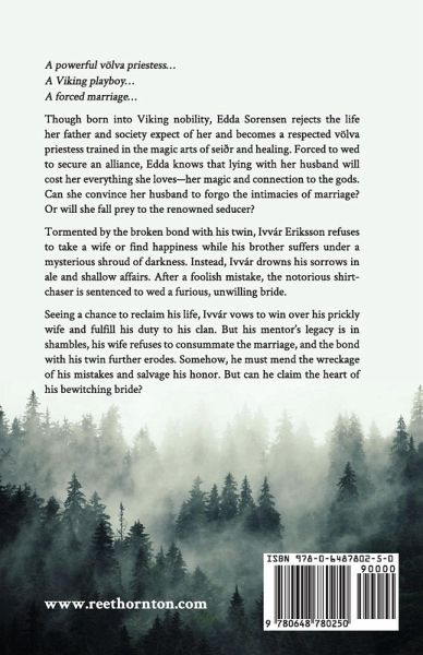 A powerful völva priestess... A Viking playboy... A forced marriage... Though born into Viking nobility, Edda Sorensen rejects the life her father and society expect of her and becomes a respected völva priestess trained in the magic arts of seiðr and healing. Forced to wed to secure an alliance, Edda knows that lying with her husband will cost her everything she loves-her magic and connection to the gods. Can she convince her husband to forgo the intimacies of marriage? Or will she fall prey to the renowned seducer? Tormented by the broken bond with his twin, Ivvár Eriksson refuses to take a wife or find happiness while his brother suffers under a mysterious shroud of darkness. Instead, Ivvár drowns his sorrows in ale and shallow affairs. After a foolish mistake, the notorious shirt-chaser is sentenced to wed a furious, unwilling bride. Seeing a chance to reclaim his life, Ivvár vows to win over his prickly wife and fulfill his duty to his clan. But his mentor's legacy is in shambles, his wife refuses to consummate the marriage, and the bond with his twin further erodes. Somehow, he must mend the wreckage of his mistakes and salvage his honor. But can he claim the heart of his bewitching bride?