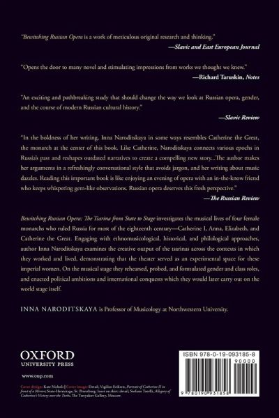 In Bewitching Russian Opera: The Tsarina from State to Stage, author Inna Naroditskaya investigates the musical lives of four female monarchs who ruled Russia for most of the eighteenth century: Catherine I, Anna, Elizabeth, and Catherine the Great. Engaging with ethnomusicological, historical, and philological approaches, her study traces the tsarinas' deeply invested interest in musical drama, as each built theaters, established drama schools, commissioned operas and ballets, and themselves wrote and produced musical plays. Naroditskaya examines the creative output of the tsarinas across the contexts in which they worked and lived, revealing significant connections between their personal creative aspirations and contemporary musical-theatrical practices, and the political and state affairs conducted during their reigns. Through contemporary performance theory, she demonstrates how the opportunity for role-playing and costume-changing in performative spaces allowed individuals to cross otherwise rigid boundaries of class and gender. A close look at a series of operas and musical theater productions--from Catherine the Great's fairy tale operas to Tchaikovsky's Pique Dame--illuminates the transition of these royal women from powerful political and cultural figures during their own reigns, to a marginalized and unreal Other under the patriarchal dominance of the subsequent period. These tsarinas successfully fostered the concept of a modern nation and collective national identity, only to then have their power and influence undone in Russian cultural consciousness through the fairy-tales operas of the 19th century that positioned tsarinas as "magical" and dangerous figures rightfully displaced and conquered--by triumphant heroes on the stage, and by the new patriarchal rulers in the state. Ultimately, this book demonstrates that the theater served as an experimental space for these imperial women, in which they rehearsed, probed, and formulated gender and class roles, and performed on the musical stage political ambitions and international conquests which they would later enact on the world stage itself.