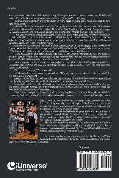 Seven years ago, Lafouchefeye (lafooshfay) County, Mississippi, was rocked to its very core with the killing of its Sheriff, Jim Travis, and one of its prominent citizens. Dr. Angus Victor Caraway. One man was found guilty, and sentenced to six years, never revealing any of his co-conspirators, both here, and Europe. Jethro Lincoln Travis, the twin brother of Jim had gladly accepted the offer that the Mayor of Lafouchfeye County, and his committee presented to him. He resigned his job as Chief Cyber Security Analyst of Interpol International, out of London, England, and after the funeral of his brother, assumed full jurisdiction. It was the first week of Spring. Lafouchfeye County was quiet. Jethro called his old friend, and military confident, Lead Detective Garrett Bennett of the 1109th Precinct in Beau Parrish, New Orleans, Louisiana. Jethro was taking a mini weekend vacation with his soon to be fiance and her Aunt Julia (Aunt Jewels) McKenna, a amateur sleuth, and retired registered nurse. A anonymous call came in to the Sheriff's office. Garrett slapped on the flashing red globe atop his black Camaro Meanwhile, Bea received a desperate phone call from Ms Sarah Jo Bailey-Crockett, owner and editor of The Lafouchfeye Ledger, about her former friend and husband, Andrew J. Crockett. He was released with a full pardon because of a major technically in the Prosecution's case, and a diligent group of Senior students from Harvard Law College. He served six years at Stockton Correctional Facility, Stockton, Florida, and returned to Lafouchfeye County, to reside. Bennett approached the crime scene, snapped on his latex gloves, started taking photos, and joined Dr. Nathan Tate, Coroner and Forensic Pathologist of Baton Rouge, Louisiana. "How long have they been dead?" asked Bennett. "I'd say three/four days," Tate answered. Dr. Tate tucked his brush inside its case and said, "Bennett, have you ever checked out a 'ear print?' It's just as unique as a fingerprint." Bennett's police radio buzzed. His volunteer deputy Randy Cuevas had discovered a woman's body partially submerged in a wooden coffin-like box with a rusty tin roof. She was still alive! Receiving Bennett's texts, Sheriff Travis, Bea, and Aunt Jewels immediately returned, and thus began a tale of hidden secrets, revenge, greed, and several attempts on Aunt Jewels life, plus a case of espionage that would involve the entire state of Mississippi! It's presumed everyone is innocent until proven guilty, however, it seems the evidence and. facts concerning Andrew J. Crockett, outweighs the truth and circumstance... ... ..... Beyond A Reasonable Doubt!