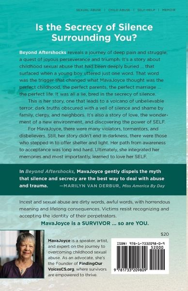 Beyond Aftershocks reveals a journey of deep pain and struggle, a quest of joyous perseverance and triumph. It's a story about childhood sexual abuse that had been deeply buried that surfaced when a young boy uttered just one word. That word was the trigger that changed what MavaJoyce thought was the perfect childhood, the perfect parents, the perfect marriage ... the perfect life. It was all a lie, bred in the secrecy of silence. This is her story, one that leads to a volcano of unbelieveable terror; dark truths obscured with a veil of silence and shame by family, clergy and neighbors. It's also a story of love, the wonderment of a new environment, and discovering the power of SELF. For MavaJoyce, there were many violators, tormentors, and disbelievers. Still, her story didn't end in darkness; there were those who stepped in to offer shelter and light. Her path from awareness to acceptance was long and hard. Untimately, she integrated her memories and most importantly, learned to love her SELF.