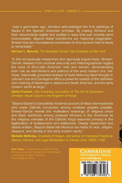 This analysis of writings about the experiences of black Christians in seventeenth-century Peru and New Granada shows that black linguistic and spiritual intermediaries bridged divisions among the populations implicated in the slave trade, exerting influence over colonial Spanish American writings and racial hierarchies in the Atlantic world.