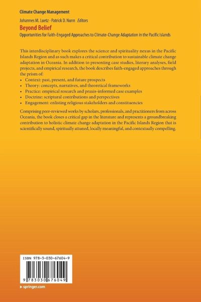 This interdisciplinary book explores the science and spirituality nexus in the Pacific Islands Region and as such makes a critical contribution to sustainable climate change adaptation in Oceania. In addition to presenting case studies, literary analyses, field projects, and empirical research, the book describes faith-engaged approaches through the prism of: - Context: past, present, and future prospects- Theory: concepts, narratives, and theoretical frameworks- Practice: empirical research and praxis-informed case examples- Doctrine: scriptural contributions and perspectives- Engagement: enlisting religious stakeholders and constituencies Comprising peer-reviewed works by scholars, professionals, and practitioners from across Oceania, the book closes a critical gap in the literature and represents a groundbreaking contribution to holistic climate change adaptation in the Pacific Islands Region that is scientifically sound, spiritually attuned, locally meaningful, and contextually compelling.