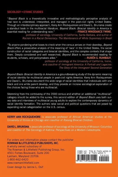 Beyond Black is a groundbreaking study of the dynamic meaning of racial identity for multiracial people in post-Civil Rights America. Kerry Ann Rockquemore and David Brunsma document the wide range of racial identities that individuals with one Black and one White parent develop, and they provide a incisive sociological explanation of the choices facing those who are multiracial. Stemming from the controversy of the 2000 Census and whether an additional "multiracial" category should be added to the survey, this second edition of Beyond Black uses both survey data and interviews of multiracial young adults to explore the contemporary dynamics of racial identity formation. The authors raise even larger social and political questions posed by expanding racial categorization on the U.S. Census.