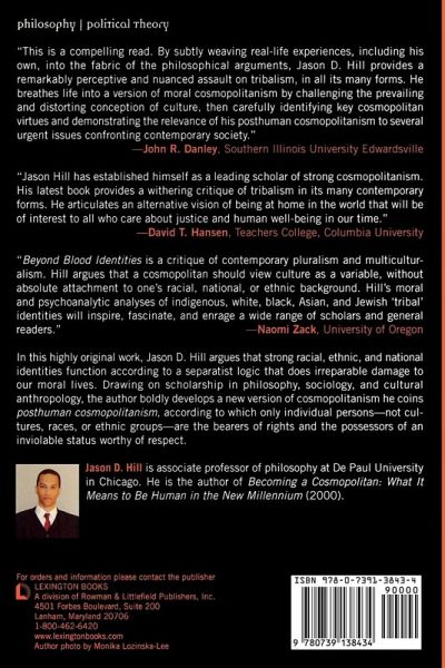 Beyond Blood Identities uncovers the social psychology of those who hold strong blood identities. In this highly original work, Jason D. Hill argues that strong racial, ethnic and national identities, which he refers to as 'tribal identities,' function according to a separatist logic that does irreparable damage to our moral lives. Drawing on scholarship in philosophy, sociology, and cultural anthropology, Hill contends that strong tribalism is a form of pathology. Beyond Blood Identities shows how a particular understanding of culture could lead to a new theoretical approach to enriched human living. Hill develops a new version of cosmopolitanism that he calls post-human cosmopolitanism to solve a number of challenges in contemporary society. From the problem of defining culture, the failure of multiculturalism, the question of who owns native culture, the identification of Jews as post-human people and the problem of their status as 'chosen people' in a modern world, the author applies a cosmopolitan analysis to some of the major problems in our global and interdependent world. He posits a world in which community has been dispensed with and replaced by its successor term sociality_the broad unmarked space in which creative social intercourse takes place. Hill applies a new cosmopolitanism to ideate a new post-humanity for the twenty-first century.