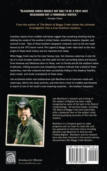 From the author of The Beast of Boggy Creek comes the ultimate investigation into a true Southern mystery... Countless reports from credible individuals suggest that something shocking may be stalking the woods of the southern United States--something massive, bipedal, and covered in hair. Tales of these Southern Sasquatch creatures--such as the one made famous by the 1972 horror movie The Legend of Boggy Creek--date back to the very origins of Deep South history and are reported even today. While Boggy Creek may be the most famous case, the infamous waterway is only the tip of a much broader mystery, one that spills into the surrounding states and beyond. From Arkansas and Oklahoma down to Texas, over to Florida and all the southern states in between, chilling accounts and compelling evidence indicate that a breed of these mysterious, man-like creatures has been successfully hiding in the shadowy foothills, piney woods, and murky swamplands of these areas. Join acclaimed author and outdoorsman Lyle Blackburn as he traverses woods and waterways, delves into dusty archives, and interviews a host of credible eyewitnesses in search of one of the South's most enduring mysteries... the Southern Sasquatch. Lyle Blackburn's research and writing on the subject of Bigfoot has been widely recognized as some of the best in the field of cryptozoology. His previous books, including The Beast of Boggy Creek and Lizard Man, offer a balanced view of the subject while delivering gripping accounts of this real-life mystery. Blackburn is a frequent guest on radio programs such as Coast to Coast AM, and has appeared on television shows including Monsters and Mysteries in America and Finding Bigfoot. Blackburn and his research have also been featured in the award-winning documentary film Boggy Creek Monster.