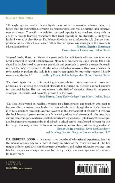 Beyond Books, Butts, and Buses: Ten Steps to Help Assistant Principals Become Effective Instructional Leaders is intended for ambitious future principals who recognize the importance of researching and preparing for that esteemed position. It contains ten steps that will lead those who are stuck in the duty world of books, butts, and buses to find ways to prepare for instructional leadership.