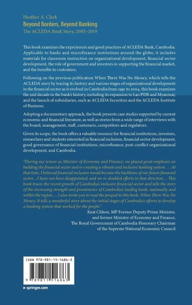 Given its scope, the book offers a valuable resource for financial institutions, investors, researchers and students interested in financial inclusion, financial sector development, good governance of financial institutions, microfinance, aid effectiveness, post-conflict organizational development, and Cambodia.