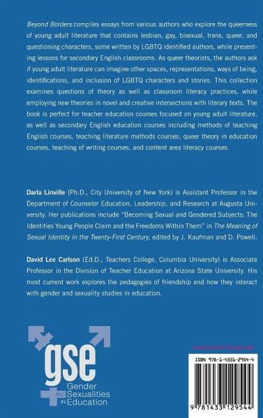 Contents: Darla Linville/David Lee Carlson:Telling New Stories - Amanda Haertling Thein/Kate E. Kedley: Out of the Closet and All Grown Up: Problematizing Normative Narratives of Coming-Out and Coming-of-Age in Young Adult Literature - David Lee Carlson: Queer Recognition and Interdependence: LGBTQ Young Adult Literature and the Contemporary Moment - Angelo Benozzo/Mirka Koro-Ljungberg/Sergia Adamo: Billy Elliot, Swan Lake, and Shifting Queering Effects - Kevin J. Burke/Adam J. Greteman: Friendship as/and Shared Enmity - E. Sybil Durand: At the Intersections of Identity: Race and Sexuality in LGBTQ Young Adult Literature - Jill M. Hermann-Wilmarth/Caitlin L. Ryan: Destabilizing the Homonormative for Young Readers: Exploring Tash's Queerness in Jacqueline Woodson's After Tupac and D Foster - William P. Banks/Jonathan Alexander: After Homonormativity: Hope for a (More) Queer Canon of Gay YA Literature - Darla Linville: Creating Spaces of Freedom for Gender and Sexuality for Queer Girls in Young Adult Literature - Jacqueline Bach/Chaunda Allen Mitchell: Exploring the Tensions of Reading LGBTQ YAL With Higher Education Student Affairs Professionals - sj Miller: Reading YAL Queerly: A Queer Literacy Framework for Inviting (A)Gender and (A)Sexuality Self-Determination and Justice - Kirsten Helmer: Queer Literacies: A Multidimensional Approach to Reading LGBTQ-Themed Literature - Nicole Sieben: Openly Straight: A Look at Teaching LGBTQ Young Adult Sports Literature through a Queer Theory Youth Lens - Mollie V. Blackburn/Caroline T. Clark: Afterword to Beyond Borders: Queer Eros and Ethics in LGBTQ Young Adult Literature.