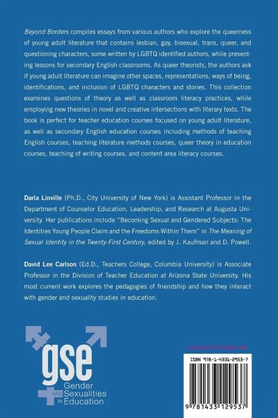 Contents: Darla Linville/David Lee Carlson:Telling New Stories - Amanda Haertling Thein/Kate E. Kedley: Out of the Closet and All Grown Up: Problematizing Normative Narratives of Coming-Out and Coming-of-Age in Young Adult Literature - David Lee Carlson: Queer Recognition and Interdependence: LGBTQ Young Adult Literature and the Contemporary Moment - Angelo Benozzo/Mirka Koro-Ljungberg/Sergia Adamo: Billy Elliot, Swan Lake, and Shifting Queering Effects - Kevin J. Burke/Adam J. Greteman: Friendship as/and Shared Enmity - E. Sybil Durand: At the Intersections of Identity: Race and Sexuality in LGBTQ Young Adult Literature - Jill M. Hermann-Wilmarth/Caitlin L. Ryan: Destabilizing the Homonormative for Young Readers: Exploring Tash's Queerness in Jacqueline Woodson's After Tupac and D Foster - William P. Banks/Jonathan Alexander: After Homonormativity: Hope for a (More) Queer Canon of Gay YA Literature - Darla Linville: Creating Spaces of Freedom for Gender and Sexuality for Queer Girls in Young Adult Literature - Jacqueline Bach/Chaunda Allen Mitchell: Exploring the Tensions of Reading LGBTQ YAL With Higher Education Student Affairs Professionals - sj Miller: Reading YAL Queerly: A Queer Literacy Framework for Inviting (A)Gender and (A)Sexuality Self-Determination and Justice - Kirsten Helmer: Queer Literacies: A Multidimensional Approach to Reading LGBTQ-Themed Literature - Nicole Sieben: Openly Straight: A Look at Teaching LGBTQ Young Adult Sports Literature through a Queer Theory Youth Lens - Mollie V. Blackburn/Caroline T. Clark: Afterword to Beyond Borders: Queer Eros and Ethics in LGBTQ Young Adult Literature.