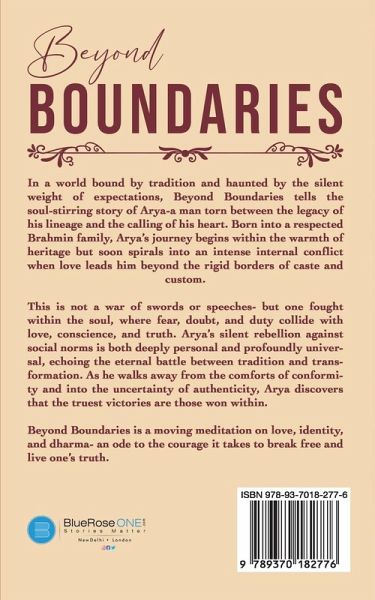 Beyond Boundaries is a soul-stirring tale of Arya-a man born into a respected Brahmin family, caught between the weight of tradition and the voice of his truth. Raised amidst the warmth of heritage, Arya's path takes a dramatic turn when love beckons him beyond the rigid confines of caste and custom. This is not a battle of swords or protests, but an intimate war waged within the soul, where fear, doubt, and duty collide with love, conscience, and truth. Arya's quiet defiance of social norms becomes a deeply personal yet universally resonant journey, reflecting the timeless conflict between tradition and transformation. As Arya steps away from the comfort of conformity into the uncertainty of authenticity, he learns that the deepest victories are those fought-and won-within. Beyond Boundaries is a moving meditation on love, identity, and dharma-an ode to the quiet courage it takes to live one's truth.