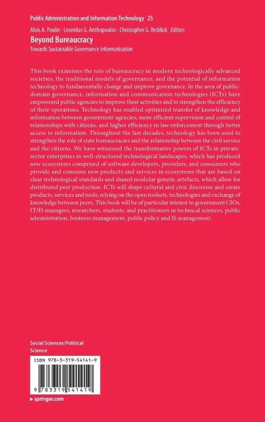 This book examines the role of bureaucracy in modern technologically advanced societies, the traditional models of governance, and the potential of information technology to fundamentally change and improve governance. In the area of public-domain governance, information and communication technologies (ICTs) have empowered public agencies to improve their activities and to strengthen the efficiency of their operations. Technology has enabled optimized transfer of knowledge and information between government agencies, more efficient supervision and control of relationships with citizens, and higher efficiency in law enforcement through better access to information. Throughout the last decades, technology has been used to strengthen the role of state bureaucracies and the relationship between the civil service and the citizens. We have witnessed the transformative powers of ICTs in private-sector enterprises in well-structured technological landscapes, which has produced new ecosystems comprised of software developers, providers, and consumers who provide and consume new products and services in ecosystems that are based on clear technological standards and shared modular generic artefacts, which allow for distributed peer production. ICTs will shape cultural and civic discourse and create products, services and tools, relying on the open toolsets, technologies and exchange of knowledge between peers. This book will be of particular interest to government CIOs, IT/IS managers, researchers, students, and practitioners in technical sciences, public administration, business management, public policy and IS management.