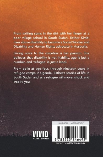 From writing sums in the dirt with her finger at a poor village school in South Sudan, Esther Simbi rises above disability to become a Social Worker and Disability and Human Rights advocate in Australia. Giving voice to the voiceless is her passion. She believes that disability is not inability, age is just a number, and ‘refugee’ is just a label. From polio at age four, through nineteen years in refugee camps in Uganda, Esther’s stories of life in South Sudan and as a refugee will move, shock and inspire you.
