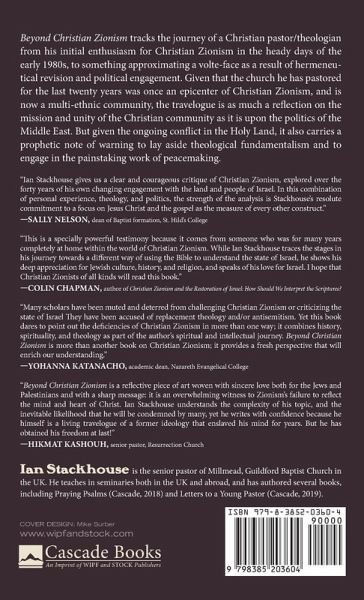Beyond Christian Zionism tracks the journey of a Christian pastor/theologian from his initial enthusiasm for Christian Zionism in the heady days of the early 1980s, to something approximating a volte-face as a result of hermeneutical revision and political engagement. Given that the church he has pastored for the last twenty years was once an epicenter of Christian Zionism, and is now a multi-ethnic community, the travelogue is as much a reflection on the mission and unity of the Christian community as it is upon the politics of the Middle East. But given the ongoing conflict in the Holy Land, it also carries a prophetic note of warning to lay aside theological fundamentalism and to engage in the painstaking work of peacemaking.