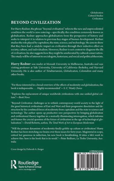 For Harry Redner, the phrase "beyond civilization" refers to the new and unprecedented condition the world is now entering'specifically, the condition commonly known as globalization