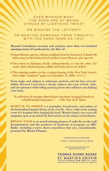 Beyond Coincidence recounts and analyzes more than two hundred amazing stories of synchronicity, the likes of: Laura Buxton, age ten, releases a balloon from her backyard. It lands 140 miles away in the backyard of another Laura Buxton, also age ten. Two sisters in Alabama decide, independently, to visit the other. En route, their identical jeeps collide and both sisters are killed. The winning number in the evening drawing of the New York Lottery three-digit "numbers" game on September 11, 2002 is 9-1-1. From magic and religion to subatomic particles and the laws of probability, Beyond Coincidence deeply explores the roots of luck, odds, and circumstance while telling amazing stories that will have you shaking your head.