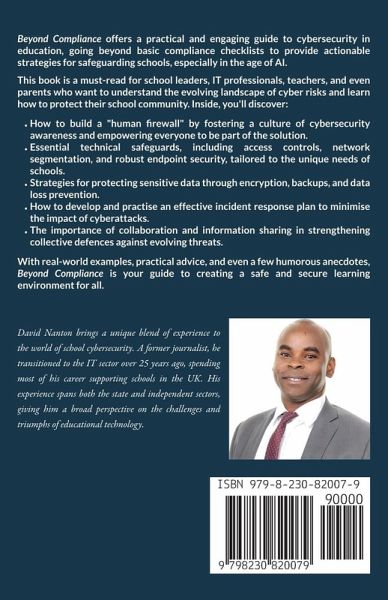 Is your school truly prepared for the growing onslaught of cyber threats? Beyond Compliance offers a practical and engaging guide to cybersecurity in education, going beyond basic compliance checklists to provide actionable strategies for safeguarding schools, especially in the age of AI. This book is a must-read for school leaders, IT professionals, teachers, and even parents who want to understand the evolving landscape of cyber risks and learn how to protect their school community. Inside, you'll discover:How to build a "human firewall" by fostering a culture of cybersecurity awareness and empowering everyone to be part of the solution. Essential technical safeguards, including access controls, network segmentation, and robust endpoint security, tailored to the unique needs of schools. Strategies for protecting sensitive data through encryption, backups, and data loss prevention. How to develop and practise an effective incident response plan to minimise the impact of cyberattacks. The importance of collaboration and information sharing in strengthening collective defences against evolving threats. With real-world examples, practical advice, and even a few humorous anecdotes, Beyond Compliance is your guide to creating a safe and secure learning environment for all.