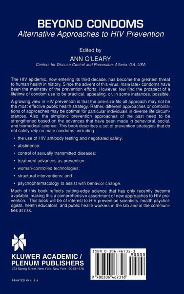 Our contemporary division of the progress of time should be delineated as B. A. E. (Before the AIDS Epidemic, i. e. , 1981) and P. A. E. Everyone keeps predicting the end of the epidemic, as Newsweek did in 1996 when combination therapy was introduced. But as far as we can tell from this vantage point, the virus continues, albeit a bit hobbled by a few drugs here and there, but moving forward nonetheless. Predictions are that over 100 million people will be infected with HIV by 2005. It is also clear that the number of people living with HIV in the US and other developed countries will continue to grow, as people with HIV live longer and better lives, but, paradoxically and perhaps as a result, the number of people acquiring HIV also continues to grow. HIV vaccines are at least 20, and perhaps 40 years away. When they do come on board, they may not prevent infection but may, instead, change the course of illness in those infected and hopefully render them less infectious. Further, the first vaccines will, in all likelihood, be less than 100% effective. The next generation of prevention strategies need to combine the best of biomedical, social, and behavioral approaches in order to protect the population. The male condom, along with reduction in the number of sexual partners or outright abstinence, have been the mainstay of HIV prevention.