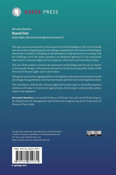 This open access book focuses on the impact of Artificial Intelligence (AI) on individuals and society from a legal perspective, providing a comprehensive risk-based methodological framework to address it. Building on the limitations of data protection in dealing with the challenges of AI, the author proposes an integrated approach to risk assessment that focuses on human rights and encompasses contextual social and ethical values.