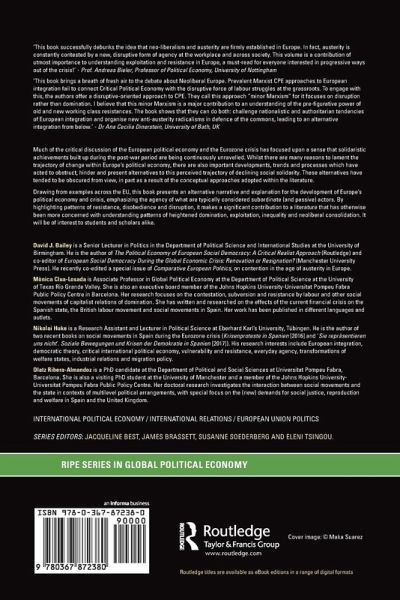 Much of the critical discussion of the European political economy and the Eurozone crisis has focused upon a sense that solidaristic achievements built up during the post-war period are being continuously unravelled. Whilst there are many reasons to lament the trajectory of change within Europe's political economy, there are also important developments, trends and processes which have acted to obstruct, hinder and present alternatives to this perceived trajectory of declining social solidarity. These alternatives have tended to be obscured from view, in part as a result of the conceptual approaches adopted within the literature. Drawing from examples across the EU, this book presents an alternative narrative and explanation for the development of Europe's political economy and crisis, emphasising the agency of what are typically considered subordinate (and passive) actors. By highlighting patterns of resistance, disobedience and disruption it makes a significant contribution to a literature that has otherwise been more concerned to understand patterns of heightened domination, exploitation, inequality and neoliberal consolidation. It will be of interest to students and scholars alike.