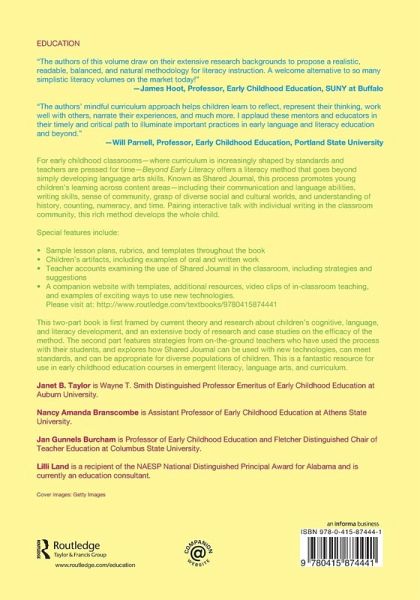 For early childhood classrooms - where curriculum is increasingly shaped by standards and teachers are pressed for time - Beyond Early Literacy offers a literacy method that goes beyond simply developing language arts skills. Known as Shared Journal, this process promotes young children's learning across content areas - including their communication and language abilities, writing skills, sense of community, grasp of diverse social and cultural worlds, and understanding of history, counting, numeracy, and time. Pairing interactive talk with individual writing in the classroom community, this rich method develops the whole child. Special features include: sample lesson plans, rubrics, and templates throughout the book children's artifacts, including examples of oral and written work teacher accounts examining the use of Shared Journal in the classroom, including strategies and suggestions a Companion Website with templates, additional resources, and video clips of in-classroom teaching and examples of exciting ways to use new technologies. This two-part book is first framed by current theory and research about children's cognitive, language, and literacy development, and an extensive body of research and case studies on the efficacy of the method. The second part features strategies from on-the-ground teachers who have used the process with their students and explores how Shared Journal can be used with new technologies, can meet standards, and can be appropriate for diverse populations of children. This is a fantastic resource for use in early childhood education courses in emergent literacy, language arts, and curriculum.