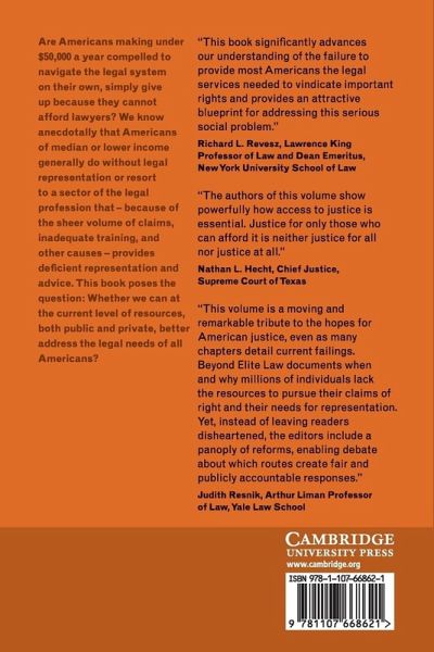 Are Americans making under $50,000 a year compelled to navigate the legal system on their own, or do they simply give up because they cannot afford lawyers? We know anecdotally that Americans of median or lower income generally do without legal representation or resort to a sector of the legal profession that - because of the sheer volume of claims, inadequate training, and other causes - provides deficient representation and advice. This book poses the question: can we - at the current level of resources, both public and private - better address the legal needs of all Americans? Leading judges, researchers, and activists discuss the role of technology, pro bono services, bar association resources, affordable solo and small firm fees, public service internships, and law student and nonlawyer representation.