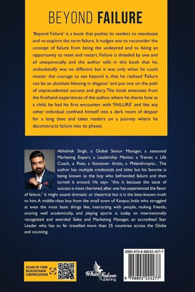 'Beyond Failure' is a book that pushes its readers to reevaluate and re explore the term failure. It nudges one to reconsider the concept of failure from being the undesired end to being an opportunity to reset and restart. Failure is dreaded by one and all unequivocally, and the author tells in this book that he, undoubtedly was no different but it was only when he could muster the courage to see beyond it, that he realised 'Failure can be an absolute blessing in disguise' and put one on the path of unprecedented success and glory. The book emanates from the firsthand experiences of the author, where he shares how as a child, he had his first encounter with 'FAILURE' and like any other individual confined himself into a dark room of despair for a long time and takes readers on a journey where he deconstructs failure into its phases.