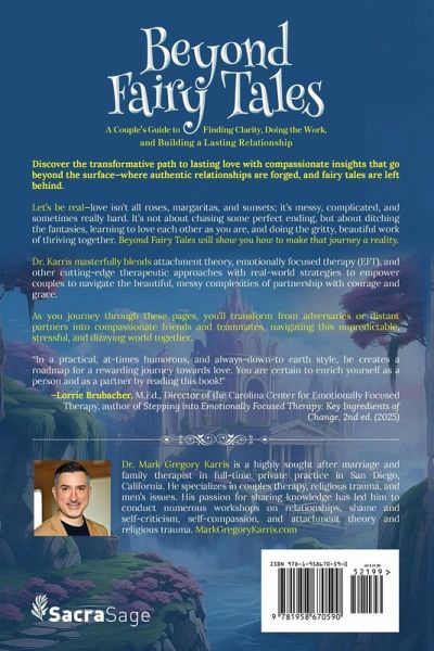 Discover the transformative path to lasting love with compassionate insights from a couples expert that go beyond the surface-where authentic relationships are forged, and fairy tales are left behind. Let's be real-love isn't all roses, margaritas, and sunsets; it's messy, complicated, and sometimes really hard. It's not about chasing some perfect ending, but about ditching the fantasies, learning to love each other as you are, and doing the gritty, beautiful work of thriving together. Beyond Fairy Tales will show you how to make that journey a reality. Dr. Karris masterfully blends attachment theory, emotionally focused therapy (EFT), and other cutting-edge therapeutic approaches with real-world strategies to empower couples to navigate the beautiful, messy complexities of partnership with courage and grace. "Karris offers an engaging, resource-rich book to bring life to stale or shaky relationships. In a practical, at-times humorous, and always-down-to earth style, he creates a roadmap for a rewarding journey towards love. You are certain to enrich yourself as a person and as a partner by reading this book!" "Beyond Fairy Tales is a playful and invigorating exploration for couples, offering a powerful resource to strengthen relationships. Karris provides fresh insights, empathetic compassion for the challenges couples face, and practical strategies for growing stronger together." -Jim Thomas, EFT Trainer Emeritus, Clinical Fellow, LMFT