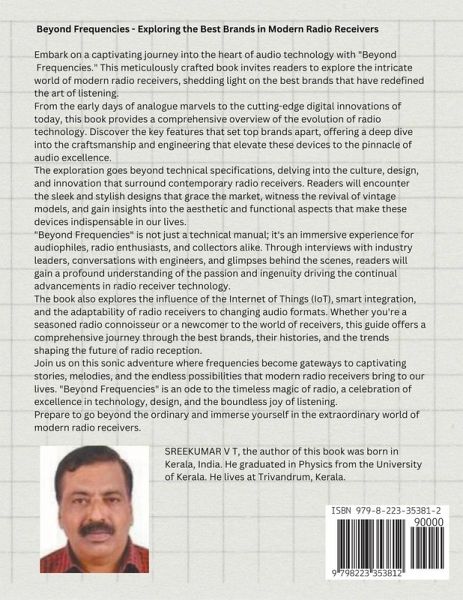Book Description: Beyond Frequencies - Exploring the Best Brands in Modern Radio Receivers Embark on a captivating journey into the heart of audio technology with "Beyond Frequencies." This meticulously crafted book invites readers to explore the intricate world of modern radio receivers, shedding light on the best brands that have redefined the art of listening. From the early days of analogue marvels to the cutting-edge digital innovations of today, this book provides a comprehensive overview of the evolution of radio technology. Discover the key features that set top brands apart, offering a deep dive into the craftsmanship and engineering that elevate these devices to the pinnacle of audio excellence. The exploration goes beyond technical specifications, delving into the culture, design, and innovation that surround contemporary radio receivers. Readers will encounter the sleek and stylish designs that grace the market, witness the revival of vintage models, and gain insights into the aesthetic and functional aspects that make these devices indispensable in our lives. "Beyond Frequencies" is not just a technical manual; it's an immersive experience for audiophiles, radio enthusiasts, and collectors alike. Through interviews with industry leaders, conversations with engineers, and glimpses behind the scenes, readers will gain a profound understanding of the passion and ingenuity driving the continual advancements in radio receiver technology. The book also explores the influence of the Internet of Things (IoT), smart integration, and the adaptability of radio receivers to changing audio formats. Whether you're a seasoned radio connoisseur or a newcomer to the world of receivers, this guide offers a comprehensive journey through the best brands, their histories, and the trends shaping the future of radio reception. Join us on this sonic adventure where frequencies become gateways to captivating stories, melodies, and the endless possibilities that modern radio receivers bring to our lives. "Beyond Frequencies" is an ode to the timeless magic of radio, a celebration of excellence in technology, design, and the boundless joy of listening. Prepare to go beyond the ordinary and immerse yourself in the extraordinary world of modern radio receivers.