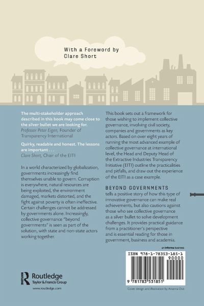 In a world characterized by globalization, governments increasingly find themselves unable to govern. Corruption is everywhere, natural resources are being exploited, the environment damaged, markets distorted, and the fight against poverty is often ineffective. Certain challenges cannot be addressed by governments alone. Increasingly, collective governance "beyond governments" is seen as part of the solution, with state and non-state actors working together. This book sets out a framework for those wishing to implement collective governance, involving civil society, companies and governments as key actors. Based on over eight years of running the most advanced example of collective governance at international level, the Head and Deputy Head of the Extractive Industries Transparency Initiative (EITI) outline the practicalities and pitfalls, and draw out the experience of the EITI as a case example. Beyond Governments tells a positive story of how this type of innovative governance can make real achievements, but also cautions against those who see collective governance as a silver bullet to solve development challenges. It provides practical guidance from a practitioner's perspective and is essential reading for those in government, business and academia.