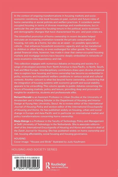 In context of ongoing transformations in housing markets and socioeconomic conditions, this book focuses on past, current and future roles of home ownership in social policies and welfare practices. It considers owner-occupied housing in terms of diverse meanings and manifestations, but in particular the part played by housing tenure in the political, socioeconomic and demographic changes that have characterized the pre- and post-crisis era. The intensified promotion of home ownership in recent decades helped stimulate an increasing orientation towards the private consumption of housing, not only as a home, but also an asset - or possibly speculative vehicle - that enhances household economic capacity and can be transferred to children or other family, or even exchanged for other goods. The latest global financial crisis, however, made it clear that owner-occupied housing markets and mortgage sectors have become deeply embedded in networks of socioeconomic interdependency and risk. This collection engages with numerous debates on housing and society in a range of developed societies from North America to Asia-Pacific to North, South, East and West Europe. Interdisciplinary contributors draw upon diverse empirical data to explore how housing and home ownership has become so embedded in polity, economy and household welfare conditions in various social and cultural contexts. Another concern is what lies beyond home ownership considering the integration of housing systems with economic growth and social stability appears to be unravelling. This volume speaks to public debates concerning the future of housing markets, policy and tenure, providing deep and provocative insights for academics, students and professionals alike.