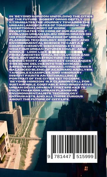 n "Beyond Horizon: Unfolding the Cities of the Future," Robert Ornig deftly illuminates the journey towards the urban landscapes of tomorrow. This exceptional body of work investigates the core of our rapidly evolving urban milieu. Ornig draws on his profound knowledge of urban planning, technology, sociology, and environmental science to cast a comprehensive, discerning eye on what our urban futures could - and should - look like. From architectural revolutions and resilient infrastructure to social connectivity and privacy challenges, this book delves into the myriad aspects of future urban living. Ornig's balanced blend of academic analysis, tangible examples, and visionary insight paints an enthralling portrait of the cities yet to come. "Beyond Horizon" is a clarion call for sustainable, equitable, and innovative urban development that speaks to policymakers, urban planners, environmentalists, technology enthusiasts, and all those curious about the future of city life.