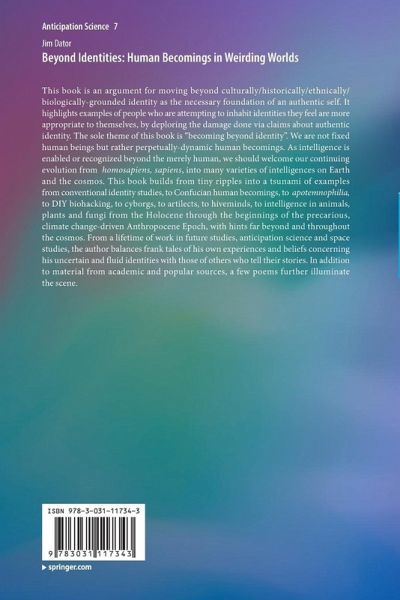 This book is an argument for moving beyond culturally/historically/ethnically/biologically-grounded identity as the necessary foundation of an authentic self. It highlights examples of people who are attempting to inhabit identities they feel are more appropriate to themselves, by deploring the damage done via claims about authentic identity. The sole theme of this book is "becoming beyond identity". We are not fixed human beings but rather perpetually-dynamic human becomings. As intelligence is enabled or recognized beyond the merely human, we should welcome our continuing evolution from homosapiens, sapiens, into many varieties of intelligences on Earth and the cosmos. This book builds from tiny ripples into a tsunami of examples from conventional identity studies, to Confucian human becomings, to apotemnophilia, to DIY biohacking, to cyborgs, to artilects, to hiveminds, to intelligence in animals, plants and fungi from the Holocene through the beginnings of theprecarious, climate change-driven Anthropocene Epoch, with hints far beyond and throughout the cosmos. From a lifetime of work in future studies, anticipation science and space studies, the author balances frank tales of his own experiences and beliefs concerning his uncertain and fluid identities with those of others who tell their stories. In addition to material from academic and popular sources, a few poems further illuminate the scene.