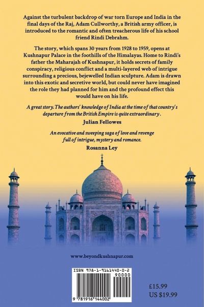 Against the turbulent backdrop of war torn Europe and India in the final days of the Raj, Adam Cullworthy, a British army officer, is introduced to the, romantic and often treacherous life of his school friend Rindi Debrahm. The story, which spans 30 years from 1928 to 1959, opens at Kushnapur Palace in the foothills of the Himalayas. Home to Rindi's father the Maharajah of Kushnapur, it holds secrets of family conspiracy, religious conflict and a multi-layered web of intrigue surrounding a precious, bejewelled Indian sculpture. Adam is drawn into this exotic and secretive world, but could never have imagined the role they had planned for him and the profound effect this would have on his life.