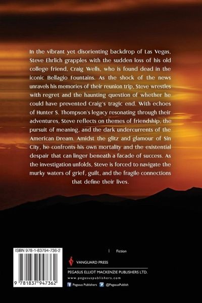 In the vibrant yet disorienting backdrop of Las Vegas, Steve Ehrlich grapples with the sudden loss ¿of his old college friend, Craig Wells, who is found dead in the iconic Bellagio Fountains. As the ¿shock of the news unravels his memories of their reunion trip, Steve wrestles with regret and the ¿haunting question of whether he could have prevented Craig's tragic end. With echoes of Hunter S. ¿Thompson's legacy resonating through their adventures, Steve reflects on themes of friendship, the ¿pursuit of meaning, and the dark undercurrents of the American Dream. Amidst the glitz and ¿glamour of Sin City, he confronts his own mortality and the existential despair that can linger ¿beneath a facade of success. As the investigation unfolds, Steve is forced to navigate the murky ¿waters of grief, guilt, and the fragile connections that define their lives.