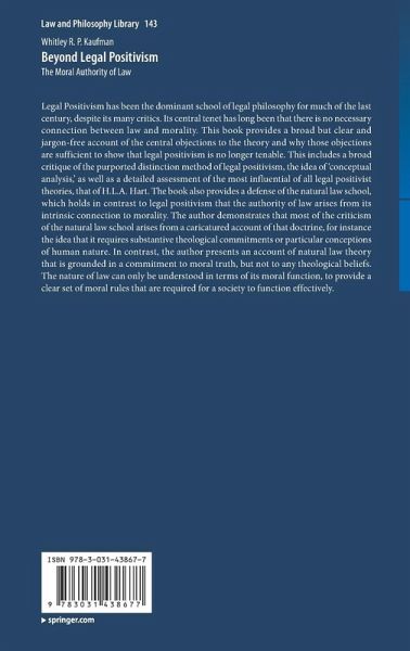 Legal Positivism has been the dominant school of legal philosophy for much of the last century, despite its many critics. Its central tenet has long been that there is no necessary connection between law and morality. This book provides a broad but clear and jargon-free account of the central objections to the theory and why those objections are sufficient to show that legal positivism is no longer tenable. This includes a broad critique of the purported distinction method of legal positivism, the idea of 'conceptual analysis,' as well as a detailed assessment of the most influential of all legal positivist theories, that of H.L.A. Hart. The book also provides a defense of the natural law school, which holds in contrast to legal positivism that the authority of law arises from its intrinsic connection to morality. The author demonstrates that most of the criticism of the natural law school arises from a caricatured account of that doctrine, for instance the idea that it requires substantive theological commitments or particular conceptions of human nature. In contrast, the author presents an account of natural law theory that is grounded in a commitment to moral truth, but not to any theological beliefs. The nature of law can only be understood in terms of its moral function, to provide a clear set of moral rules that are required for a society to function effectively.