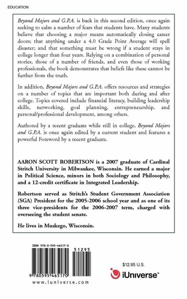 Beyond Majors and G.P.A. is back in this second edition, once again seeking to calm a number of fears that students have. Many students believe that choosing a major means automatically closing career doors; that anything under a 4.0 Grade Point Average will spell disaster; and that something must be wrong if a student stays in college longer than four years. Relying on a combination of personal stories, those of a number of friends, and even those of working professionals, the book demonstrates that beliefs like these cannot be further from the truth. In addition, Beyond Majors and G.P.A. offers resources and strategies on a number of topics that are important both during and after college. Topics covered include financial literacy, building leadership skills, networking, goal planning, entrepreneurship, and personal/professional development, among others. Authored by a recent graduate while still in college, Beyond Majors and G.P.A. is once again edited by a current student and features a powerful Foreword by a recent graduate.