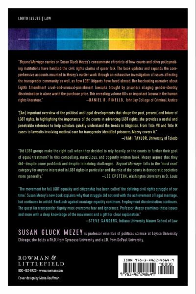 In this book, Susan Gluck Mezey examines LGBT policymaking over the last several decades, highlighting advances in LGBT rights as well as formidable challenges that still confront the LGBT community. With an emphasis on courts, she traces developments in the struggles for LGBT rights in the United States and abroad. The chapters focus on employment discrimination, transgender rights, marriage equality, and the ongoing battles over discrimination against same-sex couples and transgender persons in education, employment, and public accommodations. It also adds a global perspective by appraising issues affecting LGBT rights in other parts of the world, discussing claims of discrimination in the Canadian and South African courts as well as in the European Court of Human Rights. Mezey provides a succinct and accessible guide to the debates over sexual orientation and gender identity, evaluating the roles played by state and federal courts, legislatures, and chief executives in formulating and implementing LGBT policy. Suitable as an up-to-date resource for anyone interested in LGBT rights, Beyond Marriage will also help students in upper-level classes focusing on judicial politics, public policymaking, family law, civil rights, gender policy, and minority group politics understand ways forward for the LGBT community in the political realm.