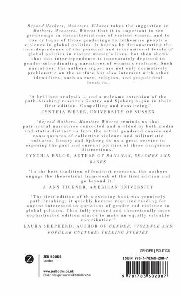 Beyond Mothers, Monsters, Whores takes the suggestion in Mothers, Monsters, Whores that it is important to see genderings in characterizations of violent women, and to use critique of those genderings to retheorize individual violence in global politics. It begins by demonstrating the interdependence of the personal and international levels of global politics in violent women's lives, but then shows that this interdependence is inaccurately depicted in gender-subordinating narratives of women's violence. Such narratives, the authors argue, are not only normatively problematic on the surface but also intersect with other identifiers, such as race, religion, and geopolitical location.