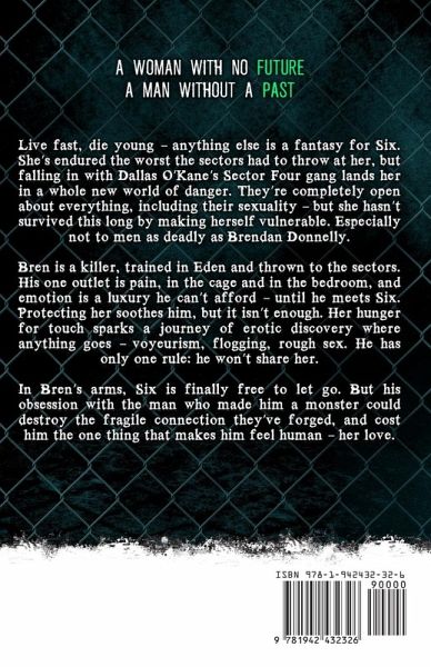 Book 3 (of 9) in the bestelling, multi-award winning BEYOND series and winner of a 2013 RT Reviewer's Choice Award. Live fast, die young-anything else is a fantasy for Six. She's endured the worst the sectors had to throw at her, but falling in with Dallas O'Kane's Sector Four gang lands her in a whole new world of danger. They're completely open about everything, including their sexuality-but she hasn't survived this long by making herself vulnerable. Especially not to a man as dangerous as Brendan Donnelly. Bren is a killer, trained as a sniper by Eden and banished to the sectors when he burned out. His one outlet is pain, in the cage and in the bedroom, and emotion is a luxury he can't afford-until he meets Six. Protecting her soothes him. So does honing her already impressive fighting skills. But it's her hunger for touch that sparks a journey of erotic discovery. She only has one rule--he's the only one who gets to touch her. In Bren's arms, Six is finally free to let go. But his obsession with the man who made him a monster could destroy the fragile connection they've forged, and cost him the one thing that makes him feel human-her love. The Beyond Series is dystopian erotic romance. While the books explore kink and sex with multiple partners in a dark and decadent world, all sex between characters is 100% consensual.