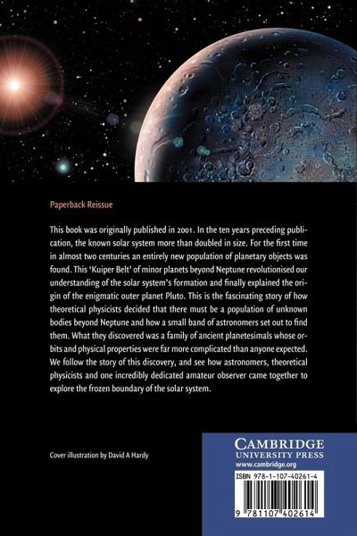 In the ten years preceding publication, the known solar system more than doubled in size. For the first time in almost two centuries an entirely new population of planetary objects was found. This 'Kuiper Belt' of minor planets beyond Neptune revolutionised our understanding of the solar system's formation and finally explained the origin of the enigmatic outer planet Pluto. This is the fascinating story of how theoretical physicists decided that there must be a population of unknown bodies beyond Neptune and how a small band of astronomers set out to find them. What they discovered was a family of ancient planetesimals whose orbits and physical properties were far more complicated than anyone expected. We follow the story of this discovery, and see how astronomers, theoretical physicists and one incredibly dedicated amateur observer came together to explore the frozen boundary of the solar system.