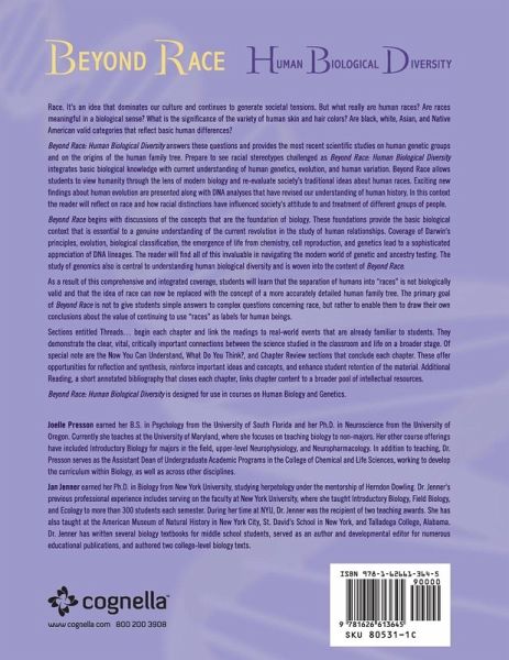 Race. It’s an idea that dominates our culture and continues to generate societal tensions. But what really are human races? Are races meaningful in a biological sense? What is the significance of the variety of human skin and hair colors? Are black, white, Asian, and Native American valid categories that reflect basic human differences? Beyond Race: Human Biological Diversity answers these questions and provides the most recent scientific studies on human genetic groups and on the origins of the human family tree. Prepare to see racial stereotypes challenged as Beyond Race: Human Biological Diversity integrates basic biological knowledge with current understanding of human genetics, evolution, and human variation. Beyond Race allows students to view humanity through the lens of modern biology and re-evaluate society’s traditional ideas about human races. Exciting new findings about human evolution are presented along with DNA analyses that have revised our understanding of human history. In this context the reader will reflect on race and how racial distinctions have influenced society's attitude to and treatment of different groups of people. Beyond Race begins with discussions of the concepts that are the foundation of biology. These foundations provide the basic biological context that is essential to a genuine understanding of the current revolution in the study of human relationships. Coverage of Darwin’s principles, evolution, biological classification, the emergence of life from chemistry, cell reproduction, and genetics lead to a sophisticated appreciation of DNA lineages. The reader will find all of this invaluable in navigating the modern world of genetic and ancestry testing. The study of genomics also is central to understanding human biological diversity and is woven into the content of Beyond Race. As a result of this comprehensive and integrated coverage, students will learn that the separation of humans into “races” is not biologically valid and that the idea of race can now be replaced with the concept of a more accurately detailed human family tree. The primary goal of Beyond Race is not to give students simple answers to complex questions concerning race, but rather to enable them to draw their own conclusions about the value of continuing to use “races” as labels for human beings. Sections entitled Threads… begin each chapter and link the readings to real-world events that are already familiar to students. They demonstrate the clear, vital, critically important connections between the science studied in the classroom and life on a broader stage. Of special note are the Now You Can Understand, What Do You Think?, and Chapter Review sections that conclude each chapter. These offer opportunities for reflection and synthesis, reinforce important ideas and concepts, and enhance student retention of the material. Additional Reading, a short annotated bibliography that closes each chapter, links chapter content to a broader pool of intellectual resources. Beyond Race: Human Biological Diversity is designed for use in courses on Human Biology and Genetics.