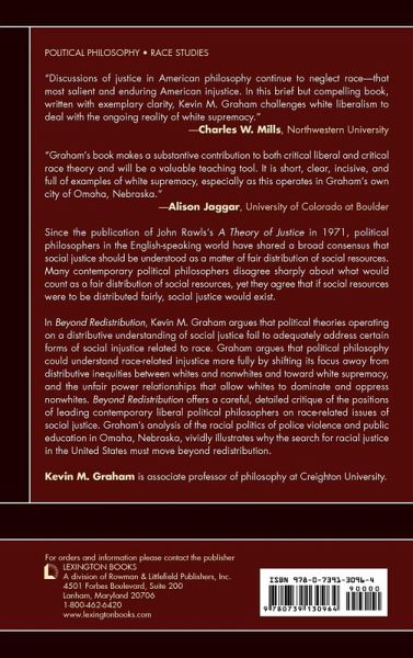Since the publication of John Rawls's A Theory of Justice in 1971, political philosophers in the English-speaking world have shared a broad consensus that social justice should be understood as a matter of fair distribution of social resources. Many contemporary political philosophers disagree sharply about what would count as a fair distribution of social resources, yet agree that if social resources were to be distributed fairly, then social justice would exist. In Beyond Redistribution, Kevin M. Graham argues that political theories operating on a distributive understanding of social justice fail to address adequately certain forms of social injustice related to race. Graham argues that political philosophy could understand race-related injustice more fully by shifting its focus away from distributive inequities between whites and nonwhites and toward white supremacy, the unfair power relationships that allow whites to dominate and oppress nonwhites. Beyond Redistribution offers a careful, detailed critique of the positions of leading contemporary liberal political philosophers on race-related issues of social justice. Graham's analysis of the racial politics of police violence and public education in Omaha, Nebraska, vividly illustrates why the search for racial justice in the United States must move beyond redistribution.