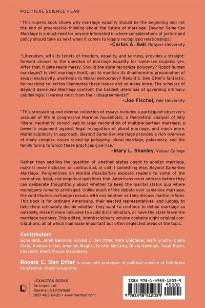 Although the debate over same-sex marriage in the United States has ended, no one seems to know what lies on the horizon. The conversation about what marriage could be like in the future is no longer confined to academics. In his dissent in Obergefell, Chief Justice Roberts linked the constitutionally-mandated legal recognition of same-sex marriage to the possibility that states may also have to recognize multi-person intimate relationships as well to avoid discriminating against plural marriage enthusiasts. The popularity of television shows like TLC's Sister Wives and HBO's Big Love suggests that Americans no longer can be dismissive of the possibility that in the foreseeable future, marriage could, and perhaps should, look very different than it does today. Rather than settling the question of whether states ought to abolish marriage, make it more inclusive, contractual, or call it something else, this book exposes readers to some of the normative, legal, and empirical questions that Americans must address before they can deliberate thoughtfully about whether to keep the marital status quo where monogamy remains privileged. Unlike much of the debate over same-sex marriage, they exchange reasons with one another as they discuss marital reform. This book is for ordinary Americans, their elected representatives, and judges, to help them ultimately decide whether they want to continue to define marriage so narrowly, make it more inclusive to avoid discrimination, or have the state leave the marriage business. This edited, interdisciplinary volume contains eight original contributions, all of which illuminate important but often neglected areas of the topic.