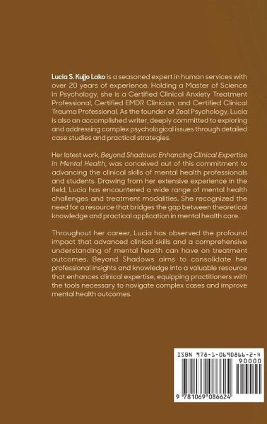 Beyond Shadows: Enhancing Clinical Expertise in Mental HealthOverview: Beyond Shadows: Enhancing Clinical Expertise in Mental Health is a pivotal resource meticulously crafted for mental health professionals and students aiming to advance their clinical proficiency and deepen their understanding of complex mental health issues. This comprehensive guide serves as an essential tool for navigating the multifaceted landscape of mental health disorders, offering a thorough exploration of advanced clinical practices, evidence-based treatment methodologies, and insightful case studies. Content Highlights: Advanced Clinical Practices: Dive into sophisticated techniques and methodologies for conducting thorough mental health assessments and delivering effective treatments. The book covers a range of advanced practices tailored to managing intricate cases and co-occurring disorders.In-Depth Case Studies: Gain practical insights through detailed case studies that illustrate the application of advanced clinical concepts in real-world scenarios. These case studies provide a window into the nuanced realities of mental health work, enhancing your ability to adapt and apply strategies in diverse clinical settings.Evidence-Based Treatment Strategies: Explore a variety of therapeutic interventions, including Cognitive Behavioral Therapy (CBT), Dialectical Behavior Therapy (DBT), and integrative approaches. The book emphasizes the importance of evidence-based practices and their application in managing complex mental health issues.Comprehensive Assessments: Learn about sophisticated assessment techniques for accurate diagnosis and treatment planning. Detailed guidance is provided on identifying subtle symptoms and understanding the interplay between different mental health conditions. Professional Development: Focus on enhancing your clinical skills, including advanced diagnostic practices, therapeutic techniques, and ethical considerations. The book aims to build on existing knowledge and foster ongoing professional growth.Integration of Theory and Practice: By combining theoretical knowledge with practical application, Beyond Shadows equips readers with the tools necessary to excel in their professional roles. The book bridges the gap between academic learning and real-world practice, offering actionable insights and strategies for effective mental health care.Beyond Shadows stands out as a vital resource for those committed to refining their clinical expertise and improving mental health outcomes. It offers a holistic approach to understanding and addressing mental health disorders, emphasizing both theoretical foundations and practical applications. Whether you are a seasoned practitioner or a student in the field, this book provides the comprehensive knowledge and skills needed to navigate the complexities of mental health work and support individuals on their path to recovery.By integrating advanced clinical techniques with real-world case studies and evidence-based strategies, Beyond Shadows is designed to be a valuable companion for anyone dedicated to advancing their practice and making a meaningful impact in the field of mental health.