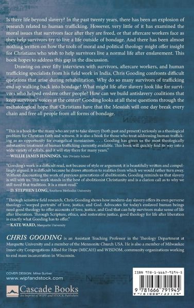 Is there life beyond slavery? In the past twenty years, there has been an explosion of research related to human trafficking. However, very little of it has examined the moral issues that survivors face after they are freed, or that aftercare workers face as they help survivors try to live a life outside of bondage. And there has been almost nothing written on how the tools of moral and political theology might offer insight for Christians who wish to help survivors live a normal life after enslavement. This book hopes to address this gap in the discussion. Drawing on over fifty interviews with survivors, aftercare workers, and human trafficking specialists from his field work in India, Chris Gooding confronts difficult questions that arise during rehabilitation. Why do so many survivors of trafficking end up walking back into bondage? What might life after slavery look like for survivors who helped enslave other people? How can we build antislavery coalitions that keep survivors' voices at the center? Gooding looks at all these questions through the eschatological hope that Christians have that the Messiah will one day break every chain and free all people from all forms of bondage.