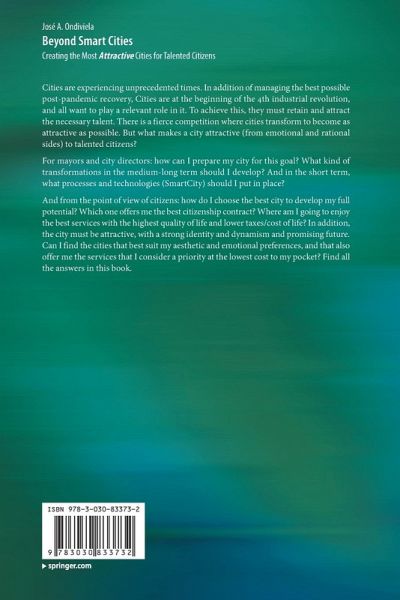 Cities are experiencing unprecedented times. In addition of managing the best possible post-pandemic recovery, Cities are at the beginning of the 4th industrial revolution, and all want to play a relevant role in it. To achieve this, they must retain and attract the necessary talent. There is a fierce competition where cities transform to become as attractive as possible. But what makes a city attractive (from emotional and rational sides) to talented citizens? For mayors and city directors: how can I prepare my city for this goal? What kind of transformations in the medium-long term should I develop? And in the short term, what processes and technologies (SmartCity) should I put in place? And from the point of view of citizens: how do I choose the best city to develop my full potential? Which one offers me the best citizenship contract? Where am I going to enjoy the best services with the highest quality of life and lower taxes/cost of life? In addition, the city must be attractive, with a strong identity and dynamism and promising future. Can I find the cities that best suit my aesthetic and emotional preferences, and that also offer me the services that I consider a priority at the lowest cost to my pocket? Find all the answers in this book.