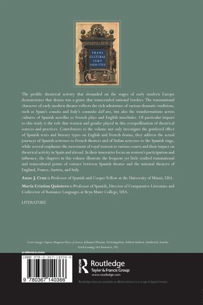 Contributors to the volume not only investigate the gendered effect of Spanish texts and literary types on English and French drama, they address the actual journeys of Spanish actresses to French theaters and of Italian actresses to the Spanish stage, while several emphasize the movement of royal women to various courts and their impact on theatrical activity in Spain and abroad. In their innovative focus on women's participation and influence, the chapters in this volume illustrate the frequent yet little studied transnational and transcultural points of contact between Spanish theater and the national theaters of England, France, Austria, and Italy.¿¿
