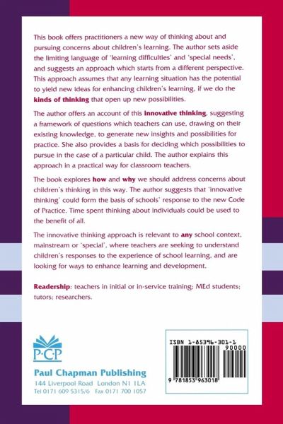 ¿Susan Hart¿s book is a welcome relief from the prescriptive empiricism of much current writing on how to respond to the difficulties in learning experienced by many children and young people. The detail of the sustained analysis is also in marked contrast to the superficial summarising that often passes for critique¿ - Support for Learning ¿The author places a refreshing emphasis upon the dynamic, interactional nature of learning and teaching, reminding us of the need to recognize the active part played by all pupils in shaping their own learning, which is mediated through the agendas which they bring to bear on classroom activities and which may be quite different from those of their teachers¿ - International Journal of Inclusive Education This book offers practitioners a new way of thinking about and pursuing concerns about children¿s learning. It sets aside the limiting language of ¿learning difficulties¿ and ¿special needs¿, and suggests an approach which starts from a different perspective. This approach assumes that any learning situation always has the potential to yield new ideas for enhancing children¿s learning, if we do the kinds of thinking that open up new possibilities. The author offers an account of this innovative thinking, suggesting a framework of questions that teachers can use, drawing on their existing knowledge and expertise, to generate new insight and possibilities for practice. She also provides a basis for deciding which possibilities to pursue in the case of a particular child. The approach is explained in a practical and usable way for classroom teachers, drawing on detailed accounts of children¿s learning and the outcomes of a research study from which the ideas were derived.