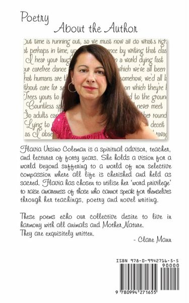 Beyond Speciesism is a collection of poems written as if through the eyes of other species. It reflects back to the reader the plight of animals and the collective desire for kindness for those of feather, fur and fin.
