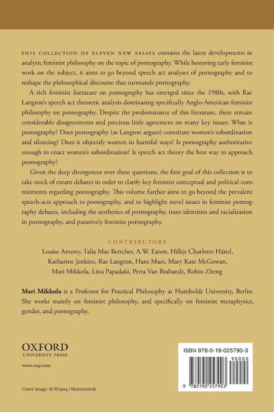 This collection of eleven new essays contains the latest developments in analytic feminist philosophy on the topic of pornography. While honoring early feminist work on the subject, it aims to go beyond speech act analyses of pornography and to reshape the philosophical discourse that surrounds pornography. A rich feminist literature on pornography has emerged since the 1980s, with Rae Langton's speech act theoretic analysis dominating specifically Anglo-American feminist philosophy on pornography. Despite the predominance of this literature, there remain considerable disagreements and precious little agreement on many key issues: What is pornography? Does pornography (as Langton argues) constitute women's subordination and silencing? Does it objectify women in harmful ways? Is pornography authoritative enough to enact women's subordination? Is speech act theory the best way to approach pornography? Given the deep divergences over these questions, the first goal of this collection is to take stock of extant debates in order to clarify key feminist conceptual and political commitments regarding pornography. This volume further aims to go beyond the prevalent speech-acts approach to pornography, and to highlight novel issues in feminist pornography-debates, including the aesthetics of pornography, trans* identities and racialization in pornography, and putatively feminist pornography.
